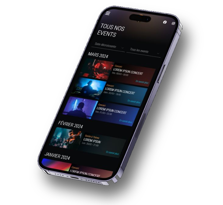 - Filtres de recherche par date et par type d'événement.