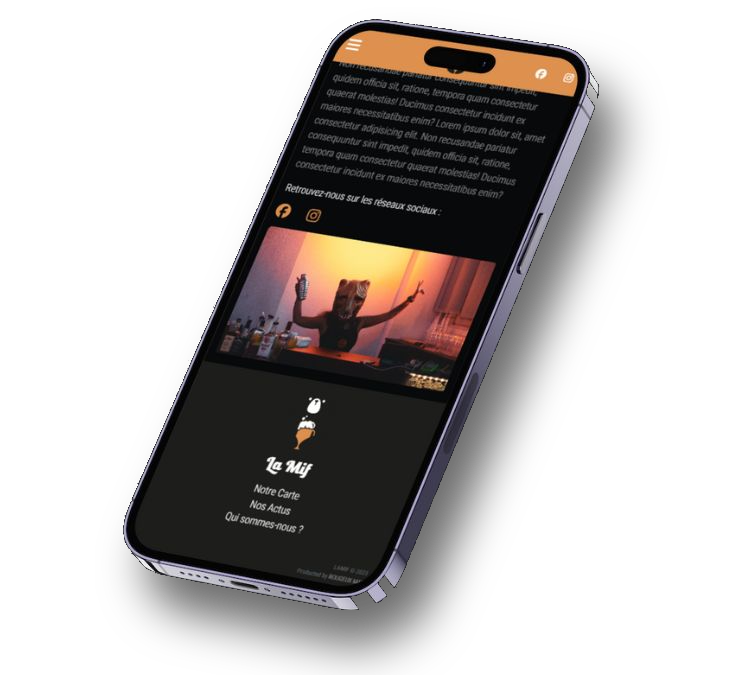 Site web pour le bar La Mif de Metz : https://lamif-bar.com. Il vise à simplifier l'accès à la carte du bar via des QR codes sur les tables, éliminant ainsi le besoin de versions papier. En plus de cette fonctionnalité, le site offre une présentation attrayante des événements à venir et des informations essentielles sur le bar, le tout dans une interface conviviale.